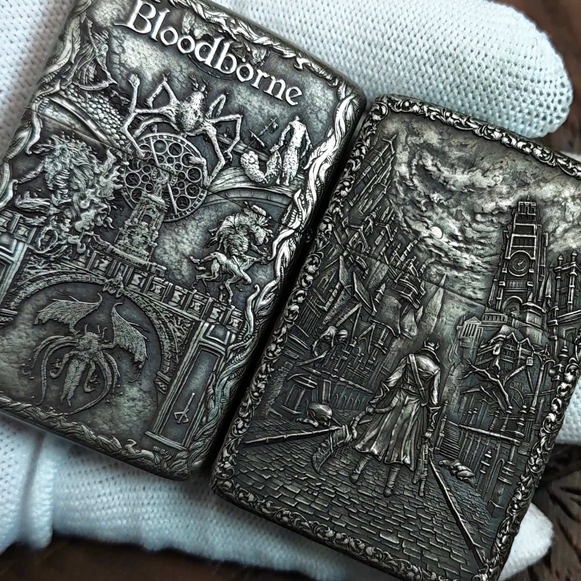 This lighter is made to order, ensuring individual attention to craftsmanship and finish for each piece. It is offered in multiple meticulously crafted relief compositions, each capturing a different interpretation of the Bloodborne universe, allowing collectors to choose the design that resonates most with their personal aesthetic.