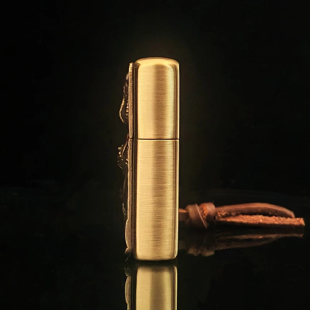 This Brushed Brass Zippo is a striking collectible lighter designed for those who appreciate bold artwork and high-quality craftsmanship. The front showcases a sculpted 3D cowgirl emblem, welded directly onto the brass case for maximum durability and an impressive textured appearance. The detailed engraving provides depth, character, and a standout visual style that makes the lighter truly unique.