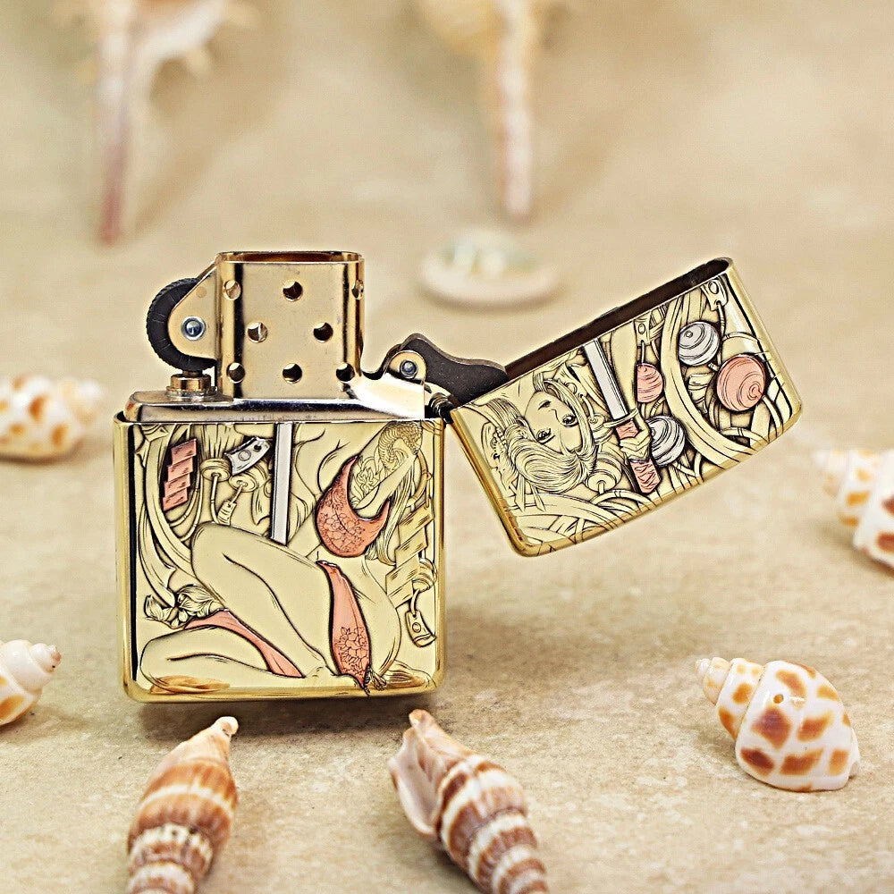 Own a powerful fusion of style and strength with this Zippo Armor 168 lighter crafted from solid copper. Featuring a 3D engraved design of a tattooed samurai girl in anime style, it’s bold, artistic, and highly collectible.