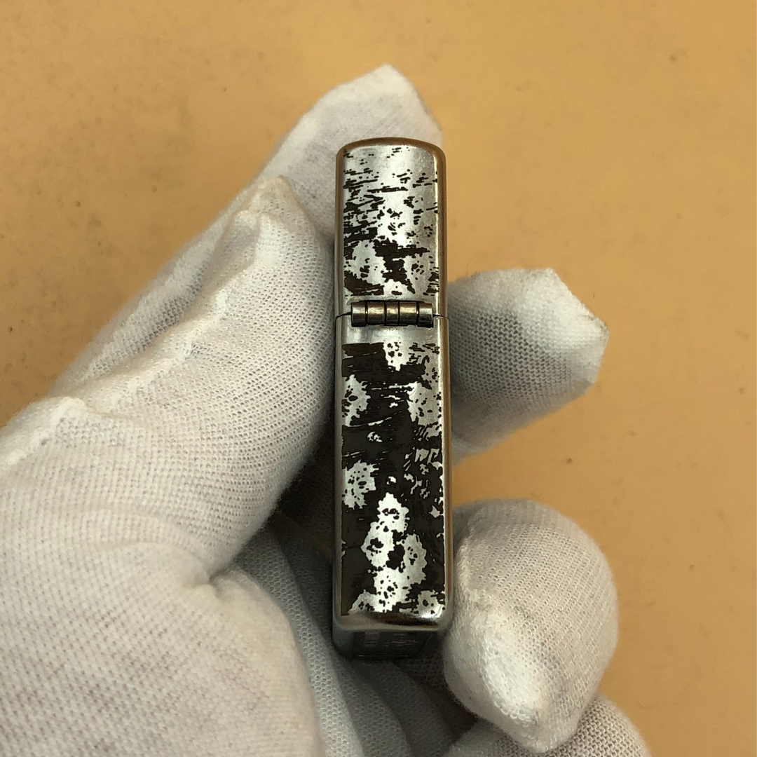 A Zippo Street Chrome lighter featuring deep engraving, inspired by Chainsaw Man.