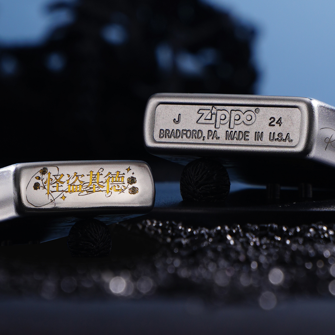Crafted from high-quality brass and finished with silver and gold tones, this Zippo embodies both mystery and sophistication. The detail work highlights Zippo’s precision craftsmanship and the anime’s elegant flair.