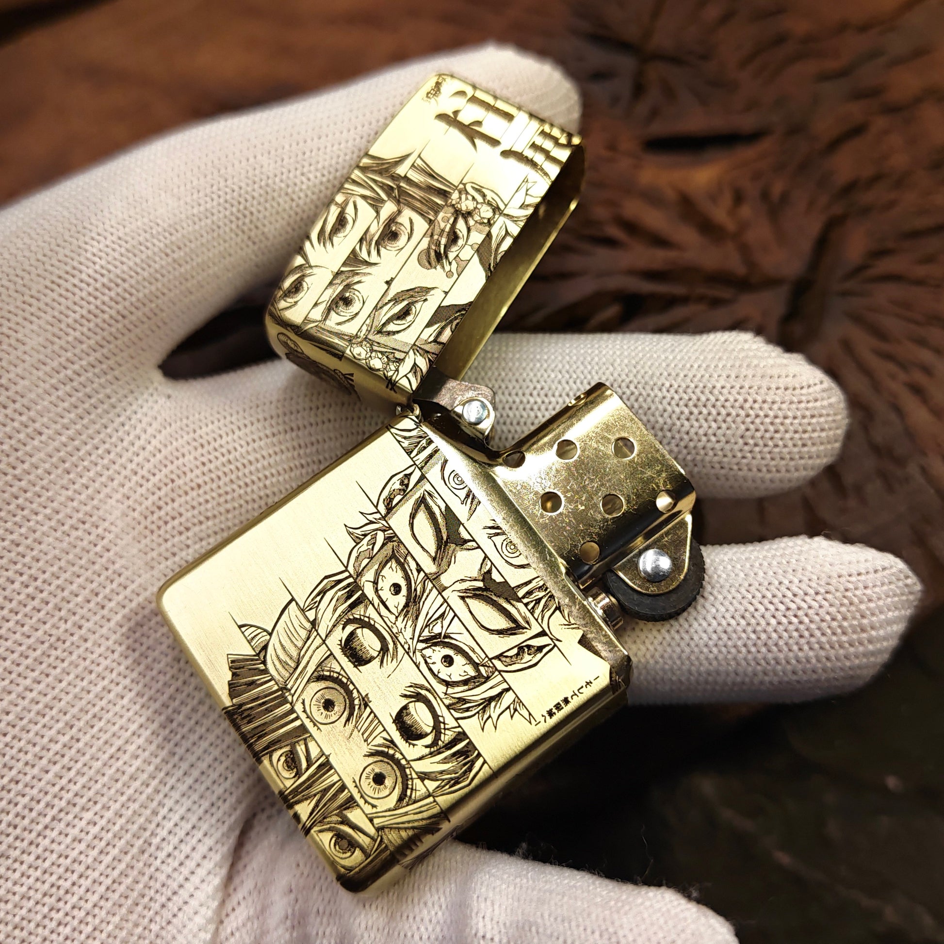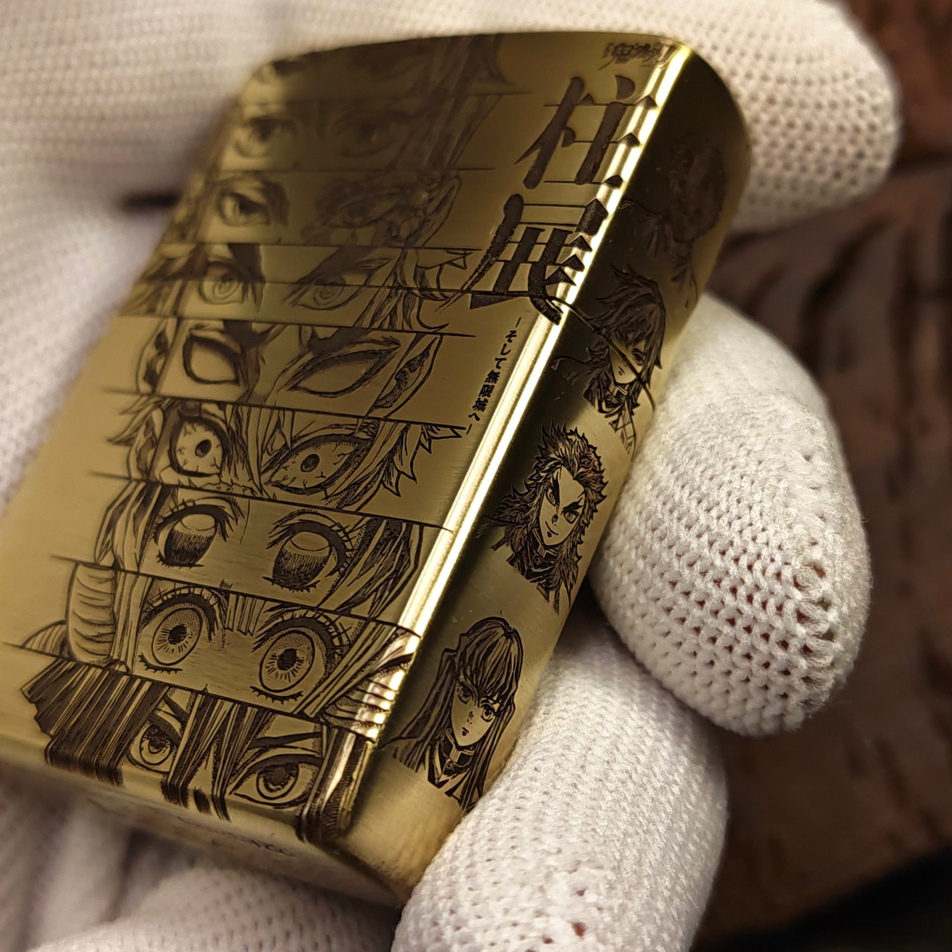 A Zippo Armor lighter featuring engraved artwork, inspired by Demon Slayer.