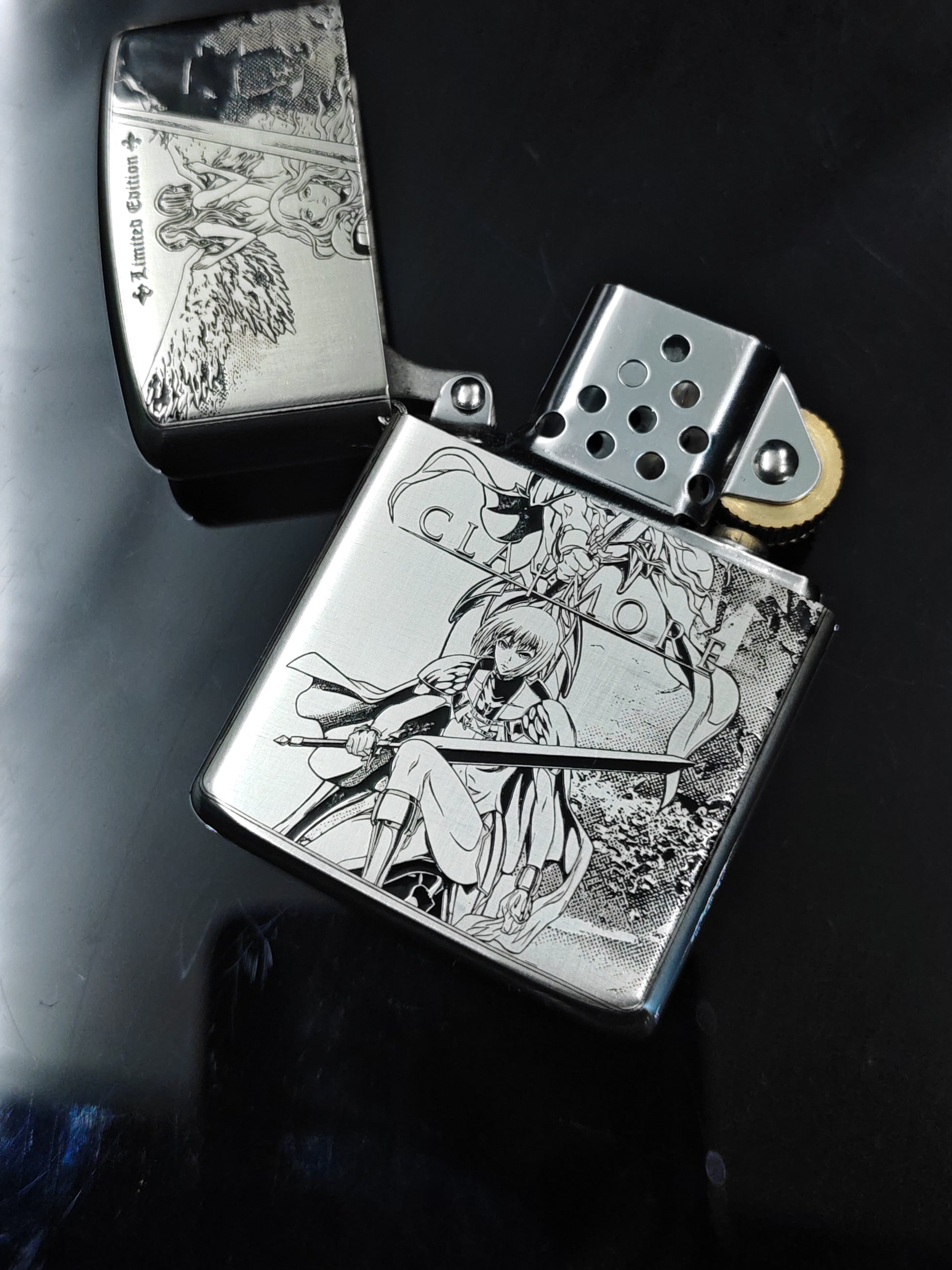 Crafted from durable cupro-nickel and finished with a brushed silver sheen, this collector’s lighter showcases high-precision deep engravings inspired by iconic Claymore characters and battle imagery.