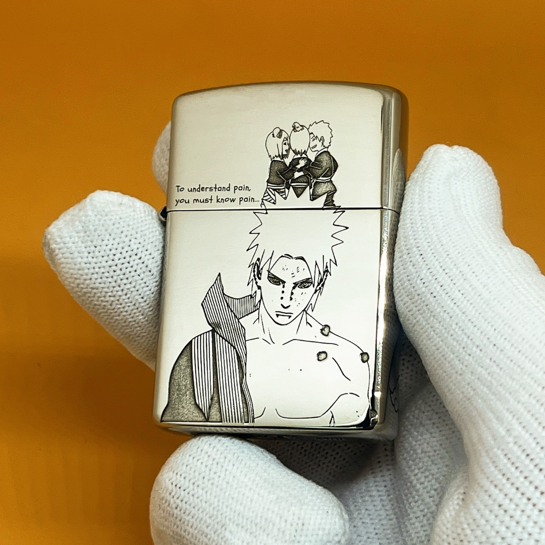 This Zorro cupronickel lighter features a deep engraved design inspired by Naruto, highlighting Pain (Nagato) in his iconic and imposing form. The artwork is engraved directly into the metal surface, capturing the character’s philosophy, intensity, and unmistakable presence.
